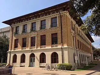 In 1910, The University of Texas at Austin College of Engineering (now known as the Cockrell School of Engineering) began offering a professional degree in architecture.[4] Two years later, the program had over 30 registered students.[5] The school was expanded over the next two decades under the leadership of Frederick Giesecke and Goldwin Goldsmith. In 1925, the school became the first in Texas to be accepted for membership in the Association of Collegiate Schools of Architecture. The program was accredited in 1935 by the National Architectural Accreditation Board. The school moved into its permanent home in the Architecture Building (Goldsmith Hall, named after Goldwin Goldsmith) in 1933 and became the School of Architecture in 1948.[5] The school's first graduate was Bertram Ernst Giesecke, who was officially licensed as an architect in 1927.[6]