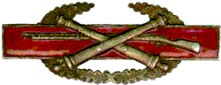 At one meal in the mess hall, a young fellow was eating at the same table as I. He was wearing a medal on his left chest. The medal looked similar to a Combat Infantryman Badge, the difference being that the background was red and the weapon an artillery gun barrel. I told him that the US Army did not confer such a medal. He got very mad at me. He was just a little fellow. I repeated my statement that there was no such medal. He said that it was a Combat Artilleryman Badge. I said that there was no such thing. His buddies huddled around him and glared at me. Every time we ran into each other on the ship, he was with his buddies and he gave me an angry look.[3]