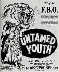 Untamed Youth is a 1924 American silent drama film directed by Emile Chautard and starring Derelys Perdue, Lloyd Hughes and Ralph Lewis.[1]