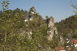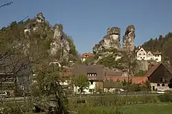 View of the two castle rocks in Tüchersfeld. Left: Upper Tüchersfeld, right: Lower Tüchersfeld