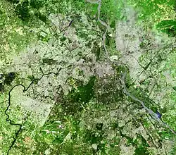 Floodplain clearance is another greening strategy that involves removing structures and pavement built on floodplains and returning the area to its natural habitat which is capable of absorbing massive quantities of water that otherwise would have flooded the built-up urban area.[55]