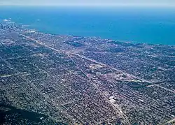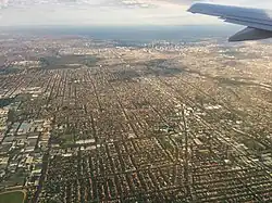 Urban sprawl (also known as suburban sprawl or urban encroachment)[1] is defined as "the spreading of urban developments (such as houses and shopping centers) on undeveloped land near a city".[2][3][4][5] Urban sprawl has been described as the unrestricted growth in many urban areas of housing, commercial development, and roads over large expanses of land, with little concern for very dense urban planning. Sometimes the urban areas described as the most "sprawling" are the most densely populated.[6][7] In addition to describing a special form of urbanization, the term also relates to the social and environmental consequences associated with this development.[8] In modern times some suburban areas described as "sprawl" have less detached housing and higher density than the nearby core city.[9][10][11] Medieval suburbs suffered from the loss of protection of city walls, before the advent of industrial warfare. Modern disadvantages and costs include increased travel time, transport costs, pollution, and destruction of the countryside.[12] The revenue for building and maintaining urban infrastructure in these areas are gained mostly through property and sales taxes. Most jobs in the US are now located in suburbs generating much of the revenue, although a lack of growth will require higher tax rates.[13][14][15]