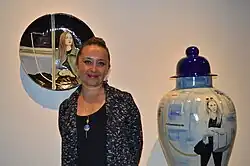 Artist Diana Salazar with ceramic pieces created with the workshop