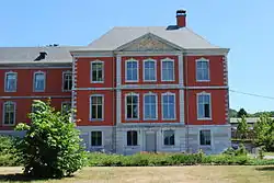 Several original buildings from the ancient abbey remain, such as the 13th century Chapter House; the 17th century House of Outsiders chateau, built in Mosan style, which houses the crystal museum;[9] and the 18th century abbey entrance, which serves as Seraing's Tourist Information Office.[10] The abbey was classified as a historical monument in 1973. The structure is considered to be an important example of Cistercian architecture as well as Gothic architectural development in Belgium.[11]