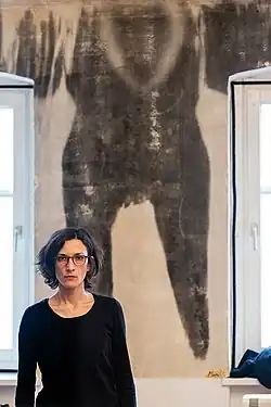 She experiments with analog photography, for instance, by dissolving the photographic surface in order to mold it like a skin or break it like dry earth.[3] The artist develops her photographic work manually on baryte paper, watercolor paper, wood, steel, concrete and walls. Her works open up a dialogue with painting and sculpture.[4]