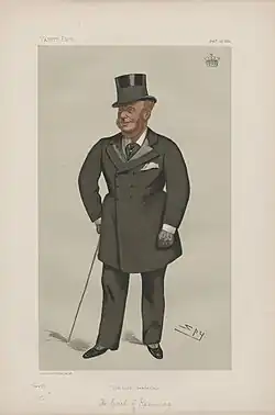 He held this office until 1885[15] and again briefly in Gladstone's third administration between February[16] and July 1886.[17] Apart from his political career he was also Lord-Lieutenant of Kerry between 1866 and 1905.[18] He was Honorary Colonel of the Kerry Militia (from 1881 designated as the 4th (Militia) Battalion of the Royal Munster Fusiliers) from 1866 until he retired in December 1902 and was succeeded by his son.[19][20]