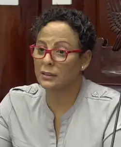 Woods has been an outspoken advocate against discrimination on the basis of gender or sexuality.[8] In August 2016, she initiated a meeting between the LGBTI community and government officials after the Supreme Court overturned Section 53 of the Criminal Code, which punished same-sex relationships with up to ten years in prison.[9] In December 2018, she called for the government to do more to address domestic abuse.[10] In April 2019, she abstained from voting on the Belize Territorial Dispute Referendum Bill as she favoured taking Guatemala to the International Court of Justice.[11][6][12] She said, "If my head is to roll, let it roll."[13] She was replaced in the Senate in August that year.[14][15]