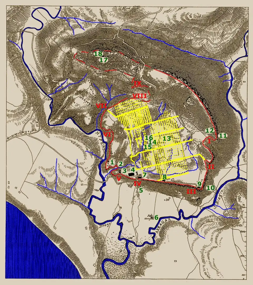 On the western side of the city are the remains of Gates VI and VII, the first probably lying on the road to Heracles, the second having two towers and two external bastions (one having 15-metre thick walls); northwards are the remains of Gates VIII and IX, now surrounded by illegal buildings.