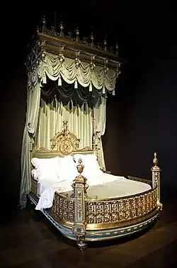 The bed designed by Édouard Lièvre, currently exhibited in the Valtesse de La Bigne room at the Musée des Arts Décoratifs, Paris.