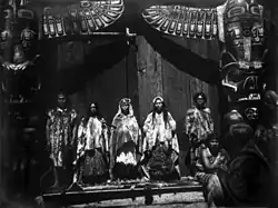 The Kwakwakaʼwakw today number about 5,500, who live in British Columbia on northern Vancouver Island and the mainland. They are also known as Kwakiutl in English, from one of their tribes, but they prefer their autonym Kwakwakaʼwakw. Their indigenous language, part of the Wakashan family, is Kwakʼwala. The name Kwakwakaʼwakw means "speakers of Kwakʼwala". The language is now spoken by less than 5% of the population—about 250 people. Today, 17 separate tribes make up the Kwakwakaʼwakw. Some Kwakwakaʼwakw groups are now extinct. Kwakʼwala is a Northern Wakashan language, a grouping shared with Haisla, Heiltsuk and Wuikyala. Kwakwakaʼwakw centres of population on Vancouver Island include communities such as Fort Rupert, Alert Bay and Quatsino, the Kwakwakaʼwakw tradition of the potlatch was banned by the federal government of Canada in 1885, but has been revived in recent decades.