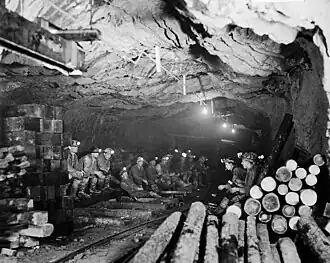 These are miners having lunch in an entry level shaft in Ontario, Canada