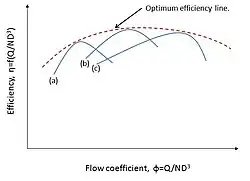 Figure 2. Different efficiency curves for a given machine obtained with various blade settings.