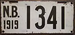 1919 | Black serial on white flat metal plate; "N.B. 1919" at left | none | 1234 | 1000 to approximately 8300 | |