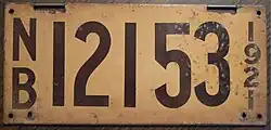 1920 | Yellow serial on black flat metal plate; vertical "NB" and "1920" at left and right respectively | none | 12345 | 1000 to approximately 11800 | |