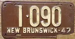 1947 | Embossed white serial on brown plate; "NEW BRUNSWICK-47" at bottom | none | 12·345 | 1·000 to approximately 40·000 | |
