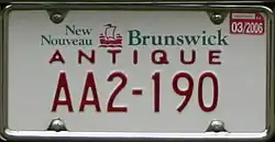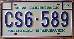 - ^ a b c d e f g h i j k l m n "New Brunswick License Plates". www.licenseplates.cc. Retrieved December 5, 2023.