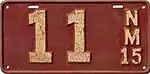 1915 Embossed white serial on red plate; vertical "N M 15" at right none 1234 1 to approximately 4700