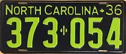 1936 Embossed light green serial on black plate; "NORTH CAROLINA–36" at top none 123-456 100-001 to approximately 545-000
