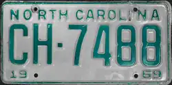 1. ^ "Old North Carolina License Plates". LeatherLicensePlates.com. Retrieved May 24, 2017.