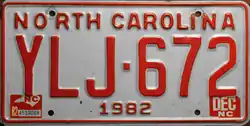 5. ^ a b Kretschmer, Rick. "A Pictorial History of North Carolina License Plates: Passenger car plates dated 1975 to present". Rick Kretschmer's License Plate Archives. Retrieved February 8, 2016.