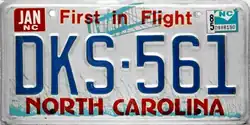 April 2007 – October 2009 Red on reflective white with light blue Wright Flyer graphic "First in Flight" as above ABC-1234 WTF-1976 to approximately ZND-9999 Mainly issued as replacements for earlier "First in Flight" plates with the ABC-123 and ABC-12 serial formats, plus the ABC-1234 format up to JZZ-9999.[5]