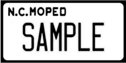 Moped 2015–present[10] Embossed black on white with border line; "N.C. MOPED" at top MB12345 MA10000 to present