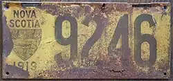 The Canadian province of Nova Scotia first required its residents to register their motor vehicles in 1907. Registrants provided their own licence plates for display until 1918, when the province began to issue plates.[1]