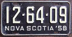 - ^ a b c Tanner, Eric N. "Nova Scotia Passenger License Plates". allaboutlicenseplates.com. Retrieved November 17, 2020.