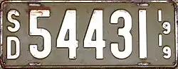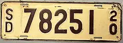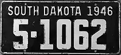- ^ a b c Tanner, Eric N. "South Dakota Passenger License Plates". allaboutlicenseplates.com. Retrieved November 11, 2020.