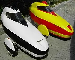 | Examples | Velocar, Fantom, Leitra, Waw, People Powered Vehicle, Alleweder, QuattroVelo, Sinclair C5, Frikar |