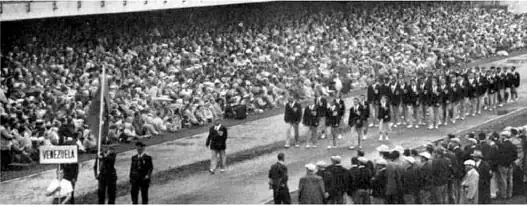 Venezuela, per Finnish alphabetical order of countries, marched 65th in the Opening ceremony. There were 58 people representing Venezuela in the ceremony.[12] The flag bearer for Venezuela at the 1952 Olympics was Asnoldo Devonish.[8]
