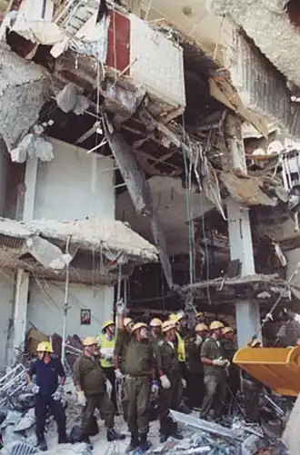 Immediately after the collapse the Home Front Command carried out rescue efforts with the Search & Rescue Unit and a reserve unit. Rescue efforts commenced with rescuers digging with bare hands amid fears the rest of the building could collapse.[4] and continued until 4 pm on 26 May 2001. Three people were pulled from the rubble alive, and 23 bodies were removed.
