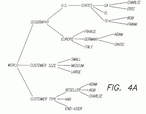 Versata's system bases pricing rules on characteristics of each organizational group instead of basing the rules on a per-customer basis. By placing customers and products into a hierarchal organization, the patent claims, the total amount of data is reduced because the same data entry is applicable to and is used for multiple customers (those fitting into a given slot in the data organization).[9]