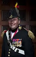 The Veteran Corps of Artillery was mustered into federal service for three months in September 1814 and attached to the 3d New York Artillery Regiment. During World War I, the corps offered its services as a home guard to the governor of New York.[4] Although no longer part of the organized militia of the United States, the corps is recognized by the State of New York as a ceremonial unit for the purposes of rendering military honors at patriotic, national, state, and municipal observances.[3]