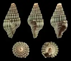 Vexillum mica, common name the glittering mitre, is a species of small sea snail, marine gastropod mollusk in the family Costellariidae, the ribbed miters.[1]