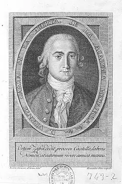 Vicente Antonio García de la Huerta (1734–1787) was an 18th-century Spanish poet, author, dramatist, and critic. His brother Pedro García de la Huerta was a Jesuit historian. He acquired fame with contributions to turn public attention to ancient native writers and held the following positions - head of the Antigallican literary party, member of Spanish academy, leader of the national school of poetry, chief of the National library, head of the Royal library, and others.[1][2][3]