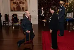 O'Sullivan's investiture as a Knight Companion of the New Zealand Order of Merit by the governor-general, Dame Cindy Kiro, at Government House, Wellington, on 2 May 2022