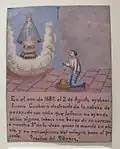 Meeting them at the door of the chapel was the 78-year-old Ana Lucia, the wife of Pedro Antes (the caretaker and custodian of the beloved statue). Feeling pity for the grieving family, she exhorted them to have confidence in The Virgin, who could restore the child to them. Taking the statue from its altar in the sacristy where it had been consigned because of its poor condition, Ana Lucia laid it near the child's dead body. In a few moments, they detected a slight movement under the shroud. The parents quickly unwrapped the cloth to discover the child well and unharmed. This first miracle of Our Lady of San Juan de Los Lagos became known in neighboring villages and towns. Numerous other miracles and favors followed, until now Our Lady is venerated by pilgrims from throughout Mexico and the United States.[4]