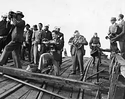 In 1937 Japan took over the Chinese-occupied parts of the city in the Battle of Shanghai but did not then occupy the International Settlement. Sometime between that year and the departure of the British garrison in 1940, the de Carvalho family moved to California.[11] In 1940 de Carvalho was living with her mother and younger brother in San Francisco.[12] A year later she found work in a low-level position at the San Francisco Chronicle when one of the paper's copy boys joined the military, and in 1943 she became a staff photographer when two of its members were drafted.[3] She covered local news events, such as a pedestrian hit by a speeding car,[13] sports events, including baseball games and golf tournaments,[14] and cultural events, such as an orchestra rehearsal conducted by Sir Thomas Beecham.[15]