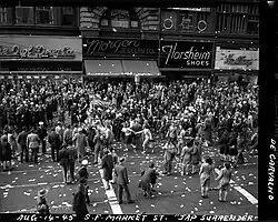 Virginia de Carvalho, Crowds Celebrating V-J Day on Market Street, August 14, 1945