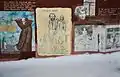 For fifteen years the artist collected materials for the gallery of the repressed people. In August, this monument finally appeared: 18 portraits of the repressed, which the artist has painted... on the fence of his neighbor.[3] But his another attempt to create a memorial gallery was smashed by the actions of hooligans and vandals. On the wall of one of the shops in the center of Borovsk, a painting of 20 killed people and the image of Alexander Solzhenitsyn was destroyed after only two days. Ovchinnikov's work was destroyed methodically and carefully.[4]