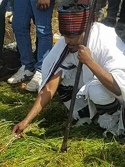 Waaqeffanna is an ethnic religion indigenous to the Oromo people in the Horn of Africa as well as other Cushitic speaking peoples.[1] The word Waaqeffanna, deriving from the word Waaqa, is the ancient name for Creator in various Cushitic languages including the Oromo people and Somali people.[2][3][4] The followers of the Waaqeffanna religion are called Waaqeffataa and they believe in the supreme being Waaqa Tokkicha (the one God).[5] It is estimated that about 3% of the Oromo population, which is 1,095,000 Oromos, in present-day Ethiopia actively practice this religion. Some put the number around 300,000, depending on how many subsets of the religion one includes. This number is still up for debate by many African religious scholars.[6]