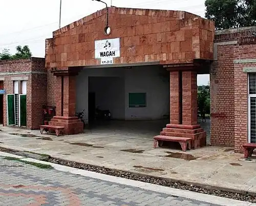 Wagah Railway Station (Urdu and Punjabi: واہگہ ریلوے اسٹیشن ) is located in Wagah, Punjab, Pakistan.[1] It is the last station in Pakistan on the Lahore–Wagah Branch Line and serves as the border station before crossing into India. Wagah serves as a sub-urban station of Lahore and is also used for immigration and Customs of passengers who travel between India and Pakistan via Samjhauta Express.[2]