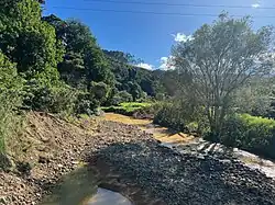 After Cyclone Gabrielle in 2023 a debris dam built up. It was released by helicopters breaching the dam with monsoon buckets. As a precaution some houses were evacuated and the road closed.[4]