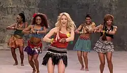 The dance routine performed during the song's chorus in the video (pictured) was dubbed the "waka waka dance". Adam Fairholm from IMVDb called it "recognizable as a dance and pretty easy to replicate if you have any dancing skill."[77]
