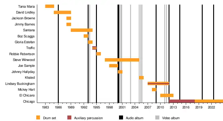 | 2000 | Johnny Hallyday | 100% Johnny – Live a la tour Eiffel | Percussion, drums | [19] |