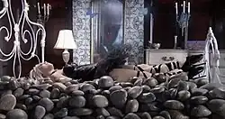 Kerli describes the video as being a "dark" Alice in Wonderland. The eye in the TV represents the "all-seeing eye" of God.[11] It is also part of the "inverted house" theme, where the TV is watching her rather than her watching the TV.[9] The lotus is the only flower that is able to grow in the mud and "the thicker the mud, the more beautiful the flower is going to be". The lotuses symbolize overcoming obstacles as do the act of Kerli's tears floating off and transforming into butterflies.[15] The wallpaper is an Estonian forest. Kerli used this because her last name, "Kõiv" means "birch" in Estonian[11][16] and because it also represents oppression.[15]