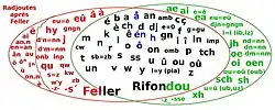 Over the course of the 20th century, Walloon society transitioned rapidly from being primarily monolingual in the local dialects (such as Walloon, Lorrain, or Picard) to being primarily monolingual in French.[9] In response to this new social reality, a group of Walloon activists began imagining a new common orthography in the late 1980s and early 1990s: a written "koiné" for the Walloon language.[12] Inspired by the examples of other regional languages like Romansh, Breton, and Occitan, the rfondeus (initial creators of the orthography) sought to unify the spelling of words across the region. During the 1990s, they formulated a new proposal, the rifondou walon, referred to in English as the "normalised spelling", "Common Written Walloon", or "Common Walloon".[13][14]