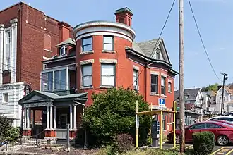 Walters House, also as known as the Walters Residence, is a historic home located in Morgantown, Monongalia County, West Virginia. It was built about 1900–1901, and is a brick Queen Anne style brick dwelling. It features a three-story tower in the southeast corner topped with a wrought-iron balustrade. The architect is unknown. It was a single family home until 1931, after which it was a boarding house, fraternity house, home of the University Christian Council, and law offices.[2] It is currently the location of the Morgantown Chabad Jewish Center. It was listed on the National Register of Historic Places in 1983. It is located in the Downtown Morgantown Historic District, listed in 1996.[1]