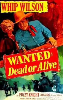 Wanted: Dead or Alive is a 1951 American western film directed by Thomas Carr and starring Whip Wilson, Fuzzy Knight and Christine McIntyre.[1] The film was distributed as a second feature by Monogram Pictures. It was shot partly at the Iverson Ranch in California. The film's sets were designed by the art directors Dave Milton and Fred Preble. It was the first of a series of films pairing Wilson and Knight.[2]